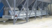 The aggregate dosing system of this concrete batch plant mainly consists of a belt feeder,batching gates,weigh belts.The belt feeder is assembled on a U-frame equipped with a drive pulley. It can be delivered with either a shaft-mounted gearbox or a drum motor. Batching gates and discharges are available in sizes and constructions according to the specific project, which is pneumatic or hydraulic controlled.The weight belt is designed over U-frame equipped with belt tightening device, complete drive unit, close three-part roller frame with bearing rollers, sprung hard metal belt scraper and revolving weigh scale.